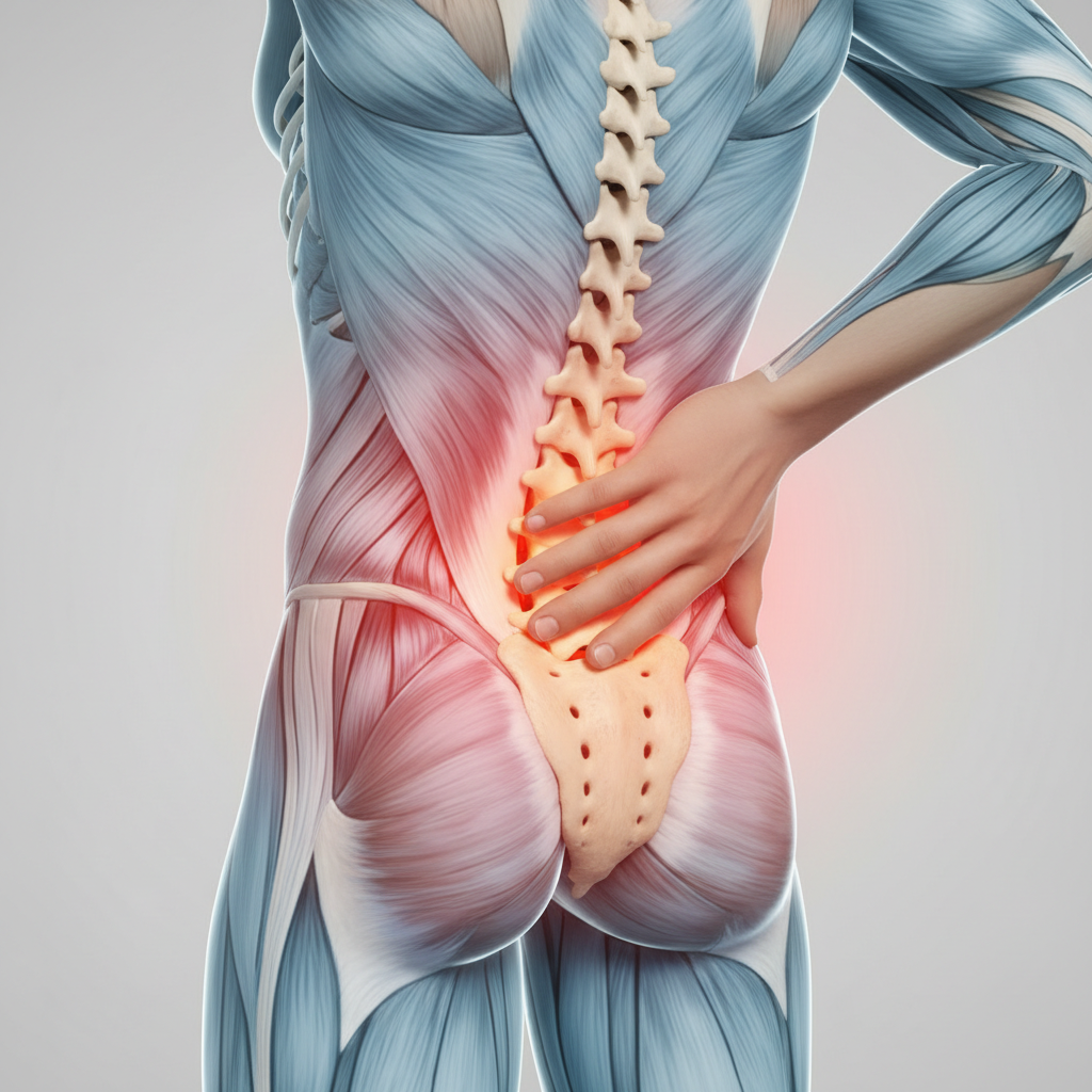 Vanlige symptomer inkluderer smerter i nedre del av ryggen (ofte på én side), smerter som kan stråle til rumpe eller lår, stivhet i bekkenet, og ubehag ved sitting, gange eller når du snur deg i sengen.
